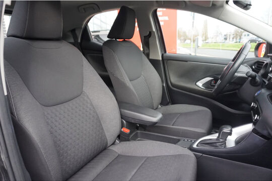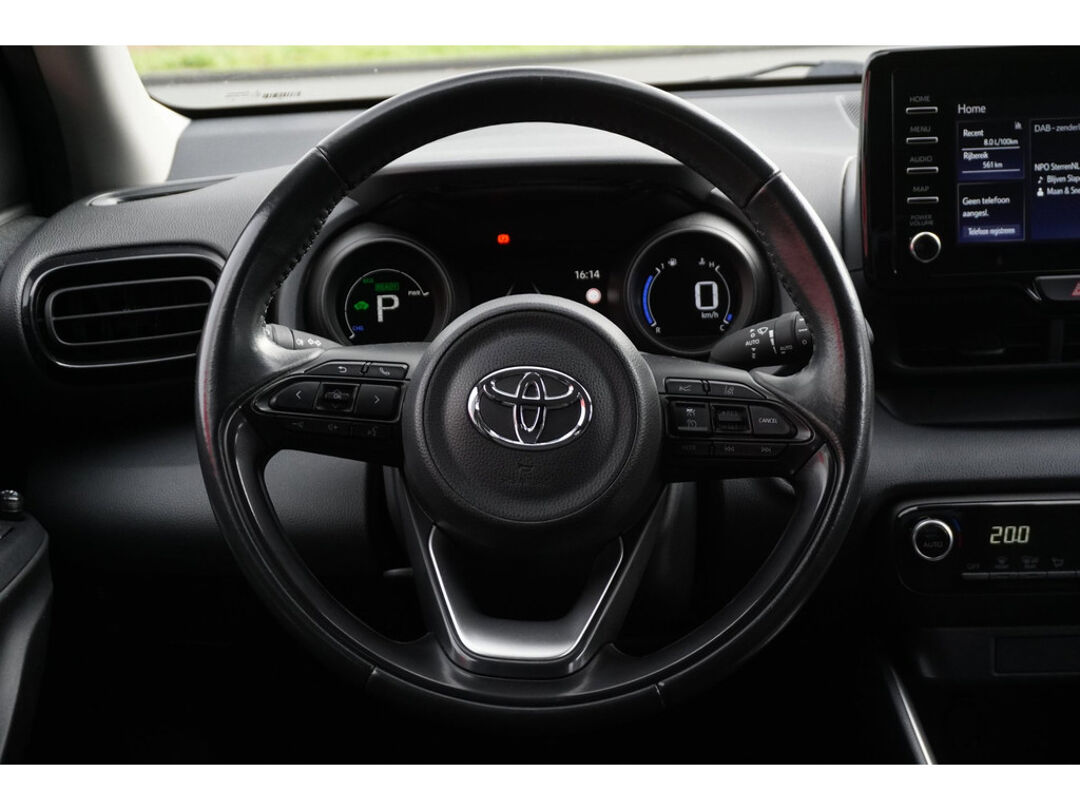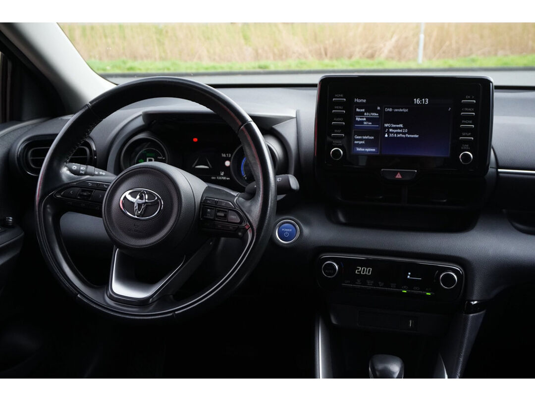 U rijdt gemakkelijk, comfortabel en zonder zorgen met deze Toyota Yaris. De aandrijving van deze Toyota wordt verzorgd door een driecilinder motor en een automatische transmissie. U wordt in deze auto ook getrakteerd op 16 inch lichtmetalen velgen, LED koplampen, dakspoiler, in hoogte verstelbare passagiersstoel, in delen neerklapbare achterbank en LED-achterlichten.