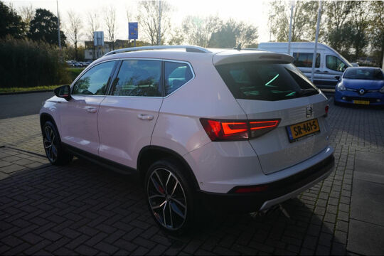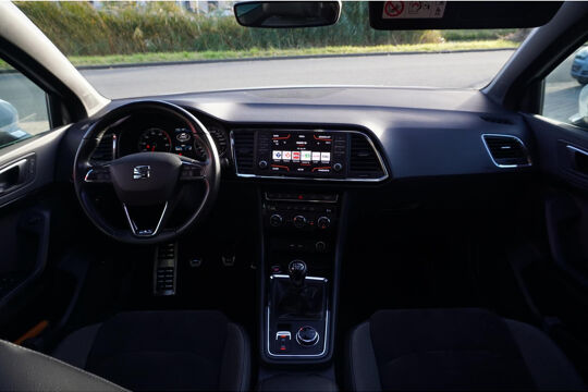 Dankzij de 360 graden camera kunt u zowel de voor- als achterzijde van het voertuig in het oog houden, wat bijdraagt aan een veiligere rijervaring. Als u regelmatig met een aanhanger of een fietsendrager op pad bent, is de afneembare trekhaak een praktische extra. In deze Ateca vindt u schakelaars op het stuur om het audiosysteem te bedienen. Dankzij automatische airconditioning is het interieur behaaglijk warm of verfrissend koel. U kunt bij het inparkeren natuurlijk niet aan alle kanten ogen hebben. Daarom is deze Seat Ateca voorzien van parkeersensoren! Ook is de Seat uitgerust met: regensensor, cruise control, keyless entry, buitentemperatuurmeter, automatisch dimmende binnenspiegel en lederen stuur.