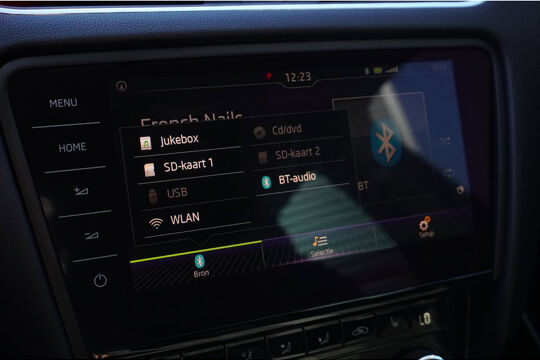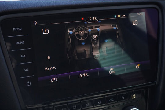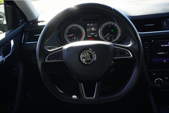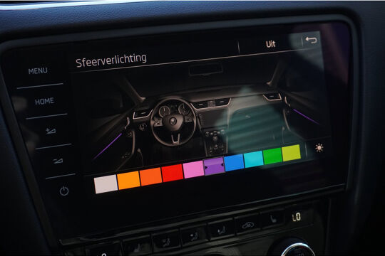 De meest gebruikte voertuigfuncties laten zich met behulp van uw stem bedienen. Kaartlezen is verleden tijd, dankzij het aanwezige navigatiesysteem met harde schijf. Het comfort wordt verhoogd door de aanwezige automatische airconditioning. Even de smartphone erin klikken en de draadloze telefoonlader zorgt vanzelf voor nieuwe energie. Met de DAB-ontvanger luistert u naar glasheldere digitale radio. Met parkeersensoren achter, regensensor, cruise control, dvd-systeem, automatisch dimmende buitenspiegels en lederen stuur is deze Skoda helemaal compleet.